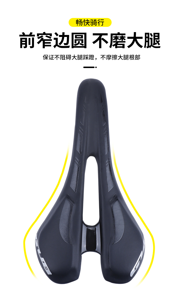 外觀設(shè)計(jì)采用人體工學(xué)原理,耐磨纖皮,中間鏤空設(shè)計(jì),以降低騎行阻力,保證騎行舒適性。