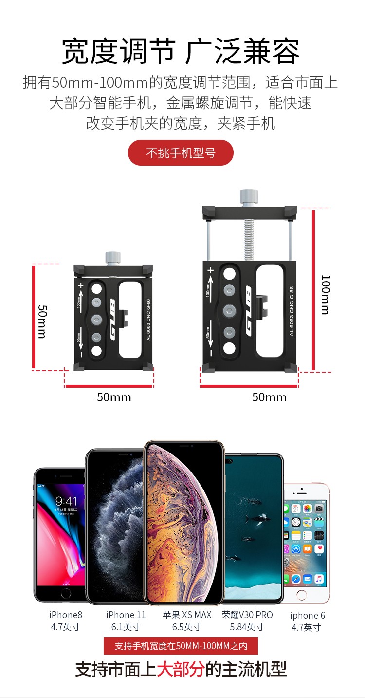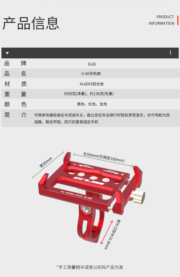 尺寸:長(zhǎng)50mm(可調(diào)至100mm),寬50mm,夾子口徑Φ31.8mm