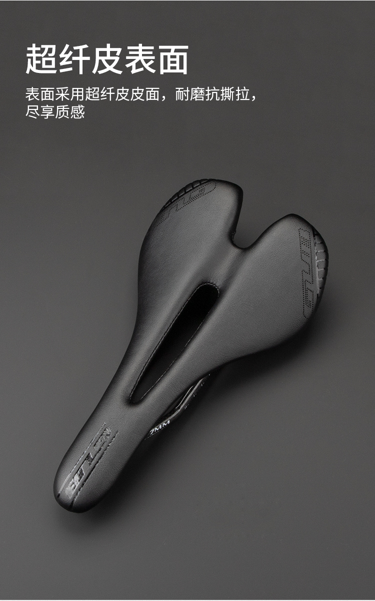 簡介:超纖皮表面,本體做工精細、LOGO鐳刻圓小孔造型、中空設(shè)計全黑色獨特設(shè)計、鏤空的開槽減輕中間部分壓力、提供有趣的空氣通風(fēng)作用。坐墊弓為橢圓形碳弓,建議使用上下夾具與座弓表面形狀相似的座管。