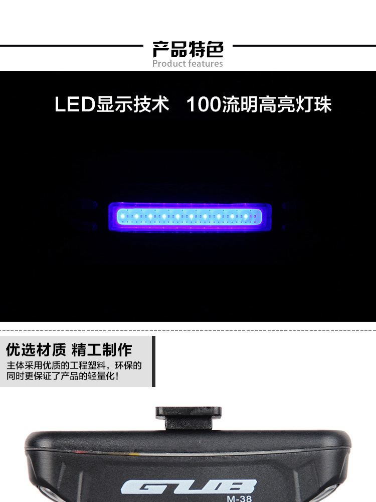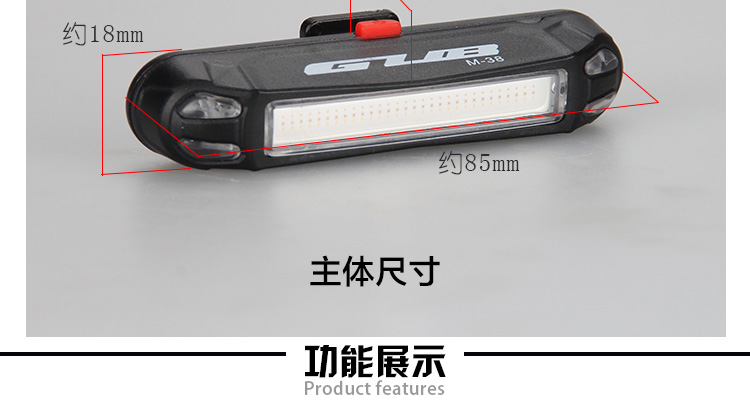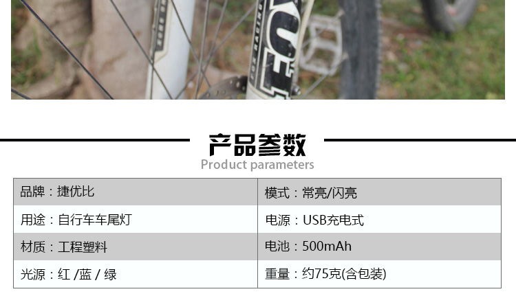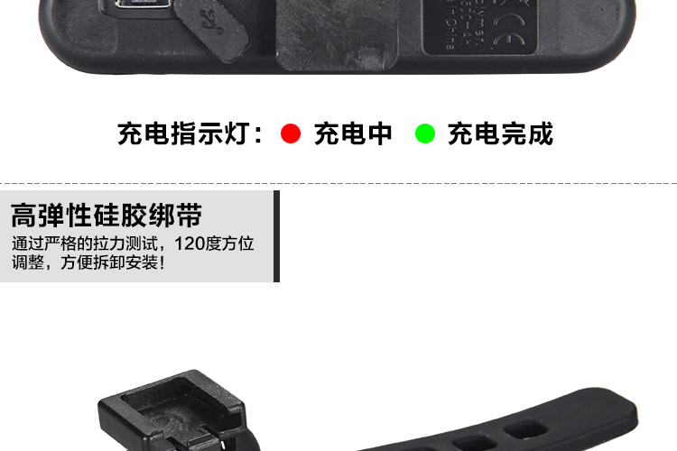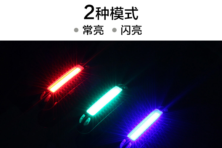 特性:LED技術(shù),COB整面發(fā)光,高亮100流明設(shè)計,實現(xiàn)整體流暢設(shè)計;配備USB接口,可循環(huán)充電;2種模式7種效果可循環(huán)切換;電池自動保護(hù)功能,電壓低于2.8V不工作;硅膠捆扎固定方式,120度方位調(diào)整,方便拆卸安裝;方型背扣設(shè)計,可橫向和縱向不同角度安裝;可安裝在坐管,下叉,車把手,前叉等。