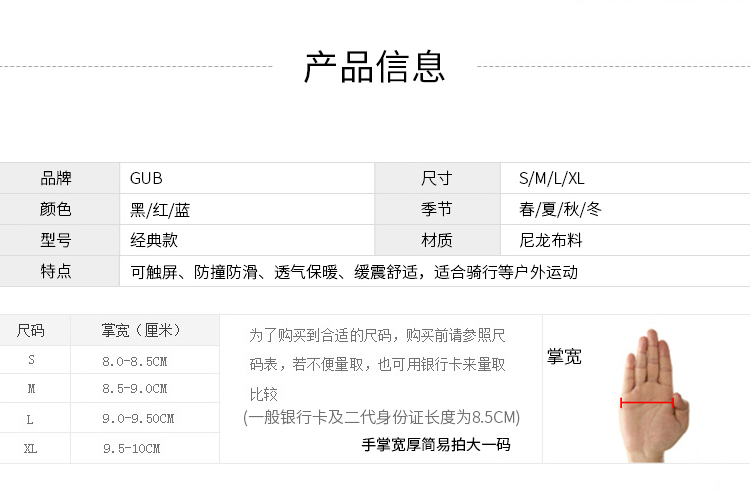 產(chǎn)品名稱:GUB S029 長(zhǎng)指手套