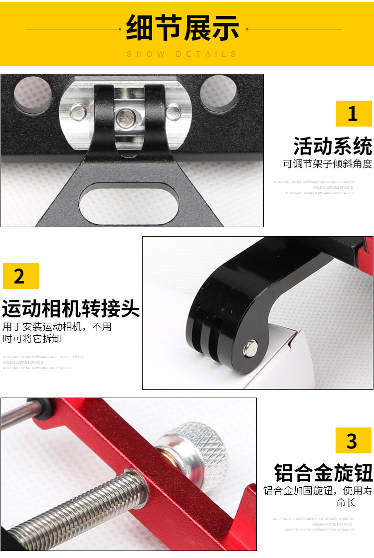 接受),可調(diào)節(jié)角度,附帶可拆卸運(yùn)動(dòng)相機(jī)轉(zhuǎn)接頭。