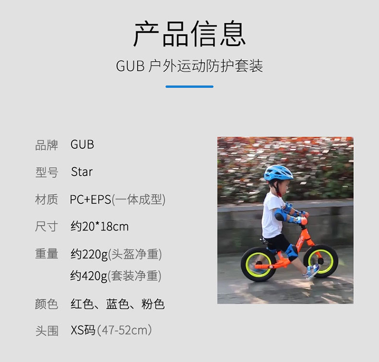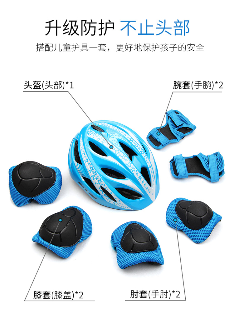 特色:兒童騎行戶(hù)外運(yùn)動(dòng)頭盔套裝,采用PC+EPS一體成型技術(shù),更安全更貼心,同時(shí)頭盔尾部的反光標(biāo)起到警示作用,讓孩子的夜騎更安全。另搭配兒童護(hù)具一套,貼心呵護(hù)孩子的安全!