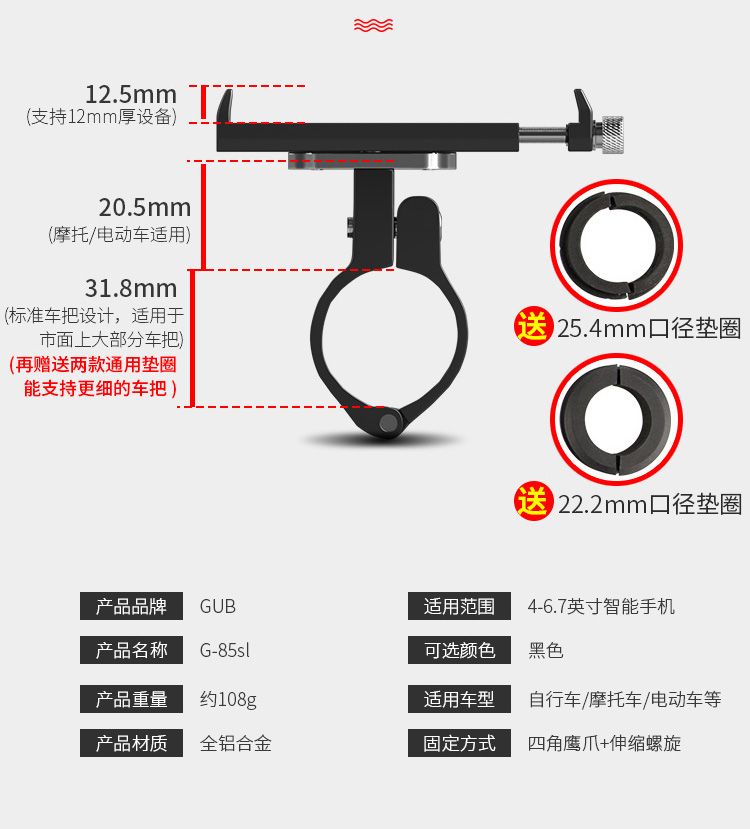 特色:G-85經(jīng)典升級,浮雕LOGO工藝,新增硅膠綁片,全方位牢固手機,讓您騎樂無窮!