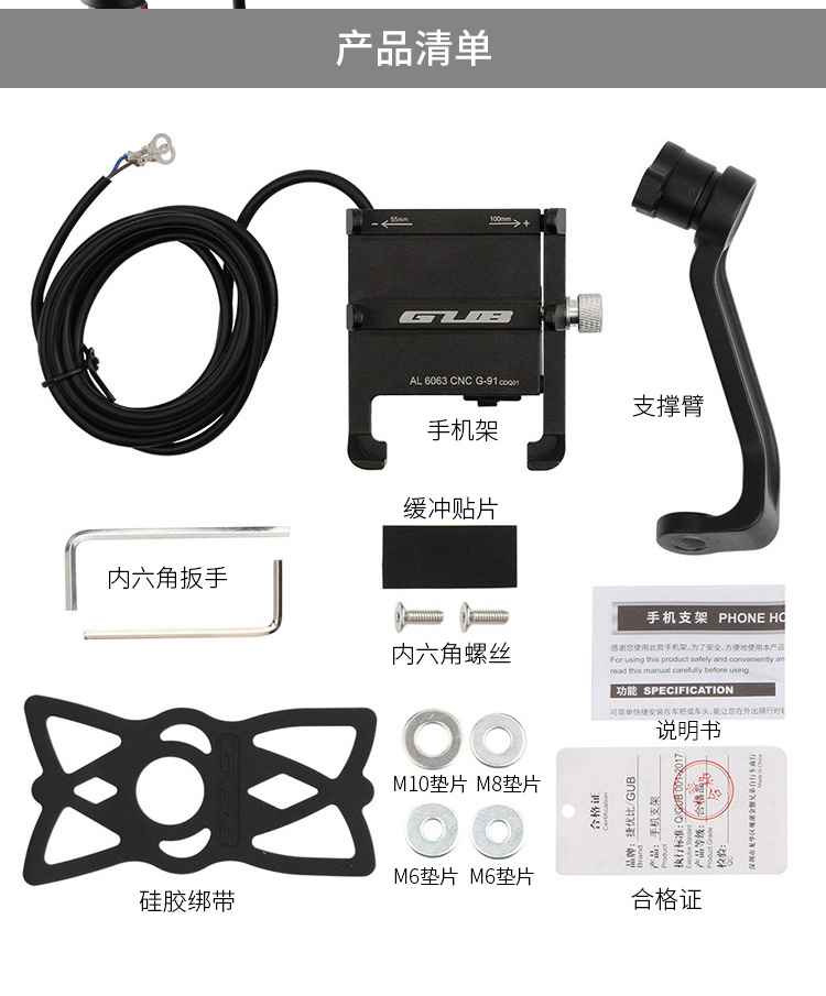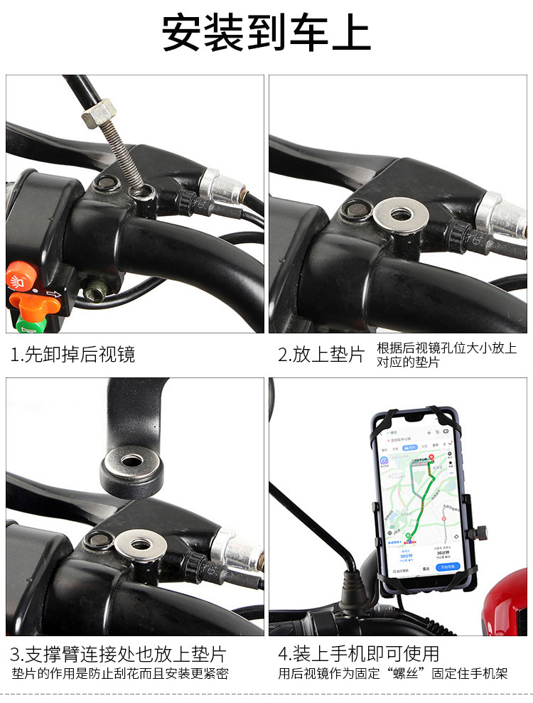 特點(diǎn):全鋁合金架體,四對(duì)位加長(zhǎng)固定部+強(qiáng)化底托,加粗支撐臂,支持360度旋轉(zhuǎn),更標(biāo)配穩(wěn)固綁帶,連接電瓶后可為手機(jī)充電,摩托車(chē)/電動(dòng)車(chē)等都可使用!