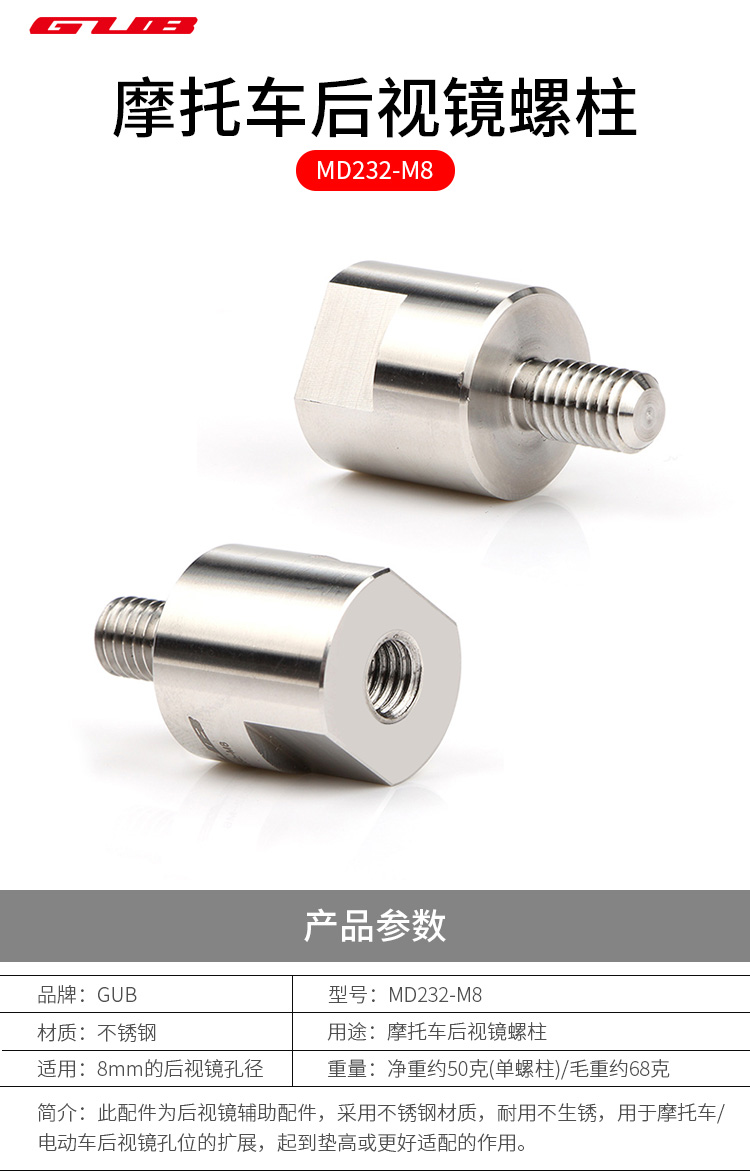 產(chǎn)品:GUB MD232-M8 摩托車(chē)后視鏡螺柱