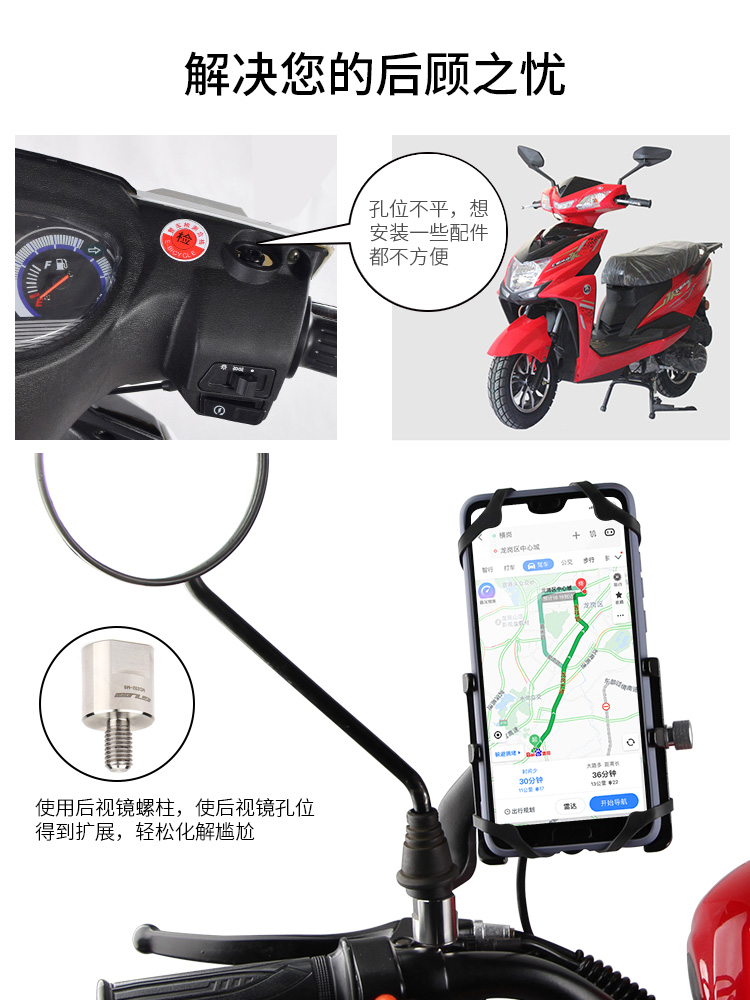 簡(jiǎn)介:此配件為后視鏡輔助配件,采用不銹鋼材質(zhì),耐用不生銹,用于摩托車(chē)/電動(dòng)車(chē)后視鏡孔位的擴(kuò)展,起到墊高或更好適配的作用。