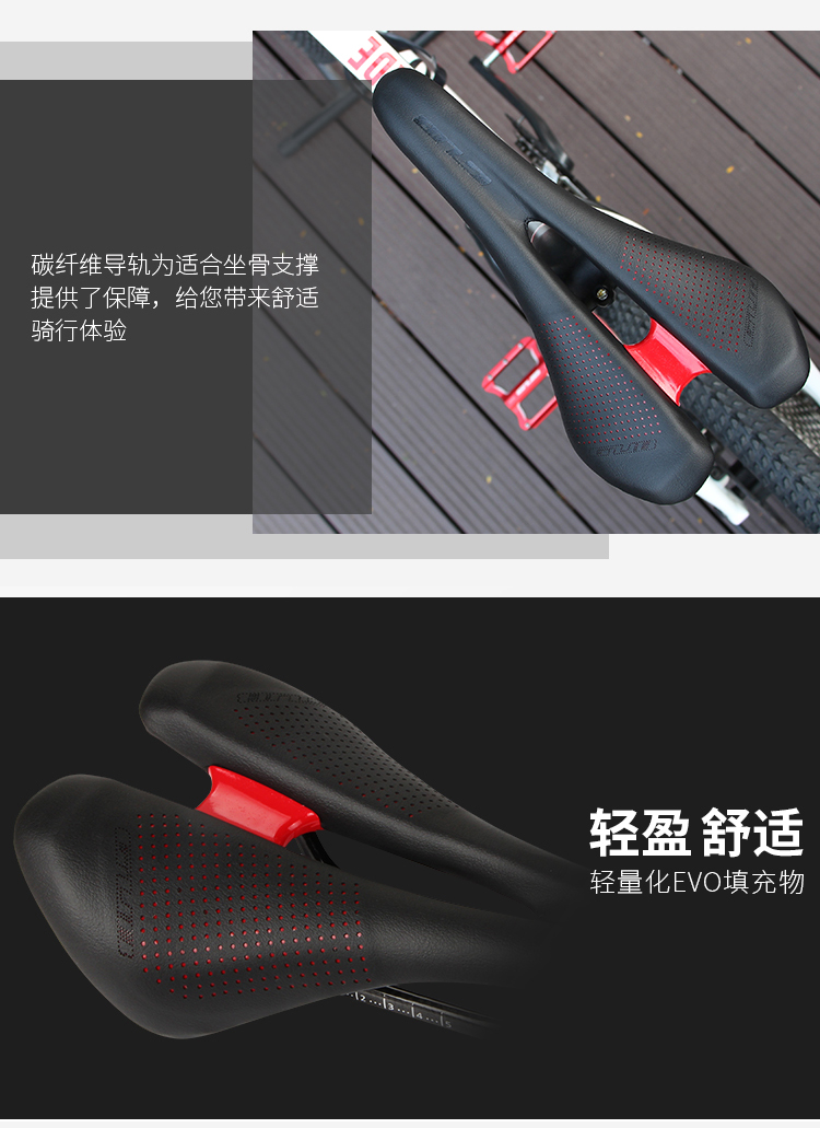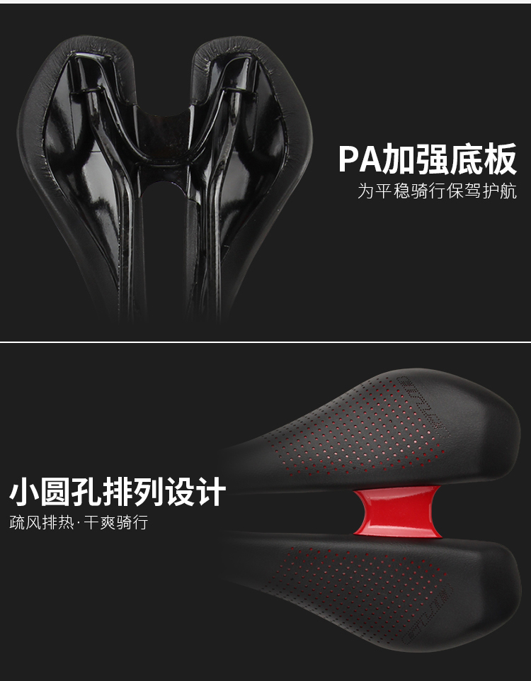 特色:超纖皮表面耐磨有質(zhì)感,碳纖維軌道強度高重量輕,小圓點排列設計,疏風排熱,加強PA底板,平穩(wěn)輸出,安心騎行!