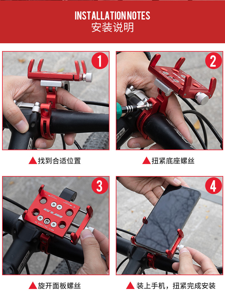 特點:鋁合金架體,高兼容性不挑手機型號,自行車、電動車等都可使用。標(biāo)配電筒支架配件,豐富擴展性能,讓你騎行無憂!