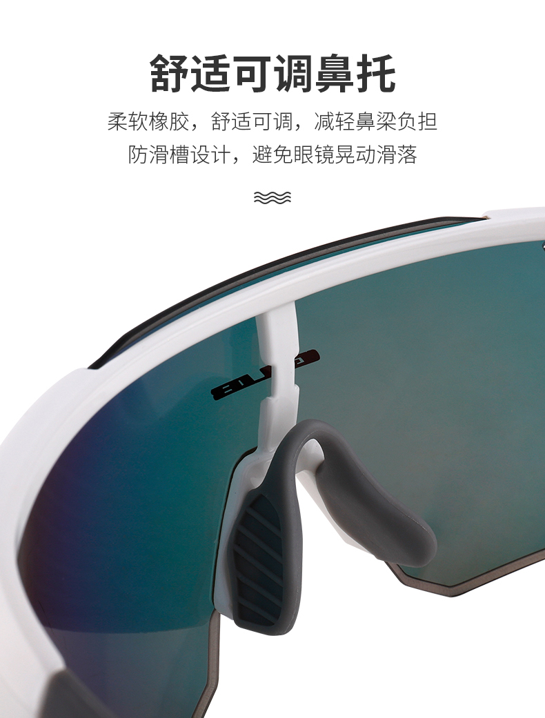 材質(zhì):PC鏡框和鏡腳、PC鏡片、TPE鼻托