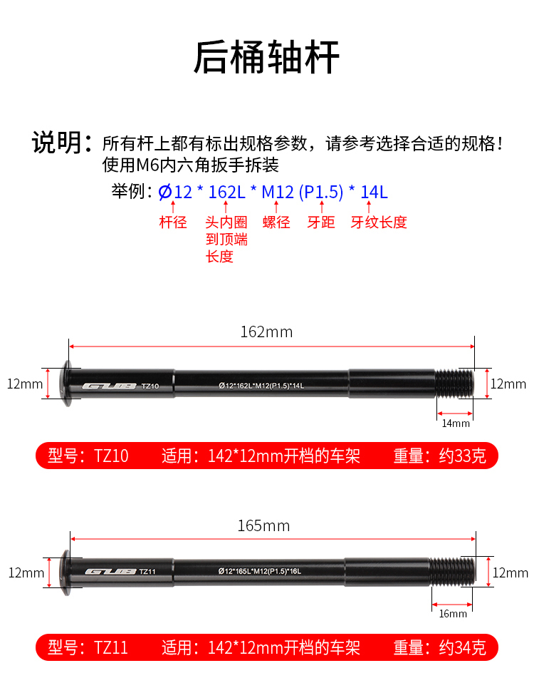 說(shuō)明:請(qǐng)根據(jù)前叉和車架尺寸選擇合適的桶軸桿!