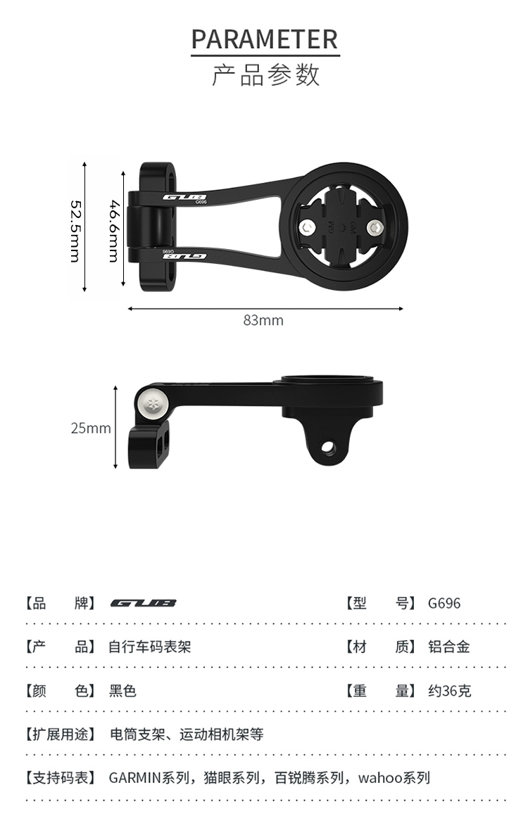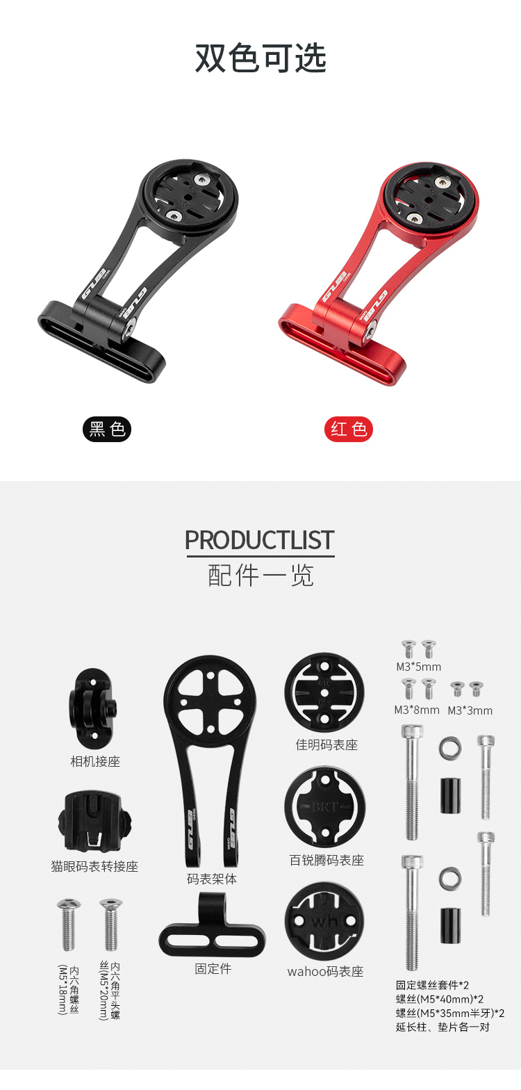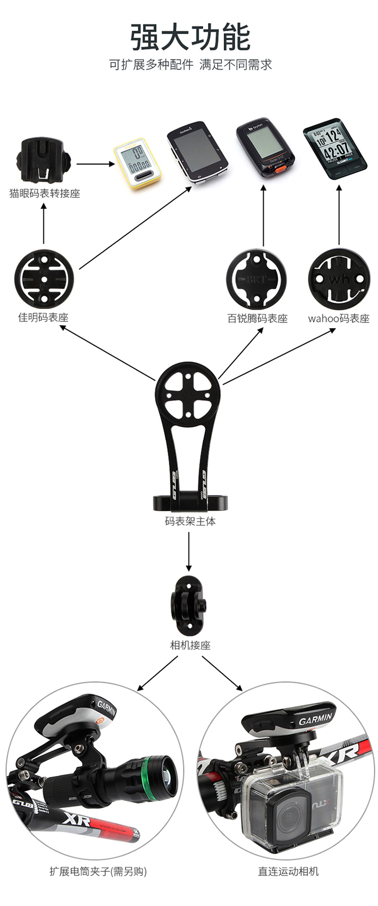 配置:配運(yùn)動相機(jī)轉(zhuǎn)接座,wahoo、佳明、百銳騰和貓眼碼表接座