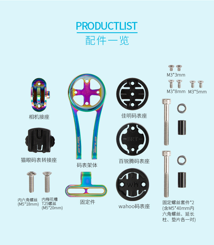 配置:配運(yùn)動(dòng)相機(jī)轉(zhuǎn)接座,wahoo、佳明、百銳騰和貓眼碼表接座