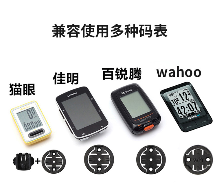 配置:配wahoo、佳明、百銳騰和貓眼碼表接座,兼容多種碼表,可調(diào)角度設計