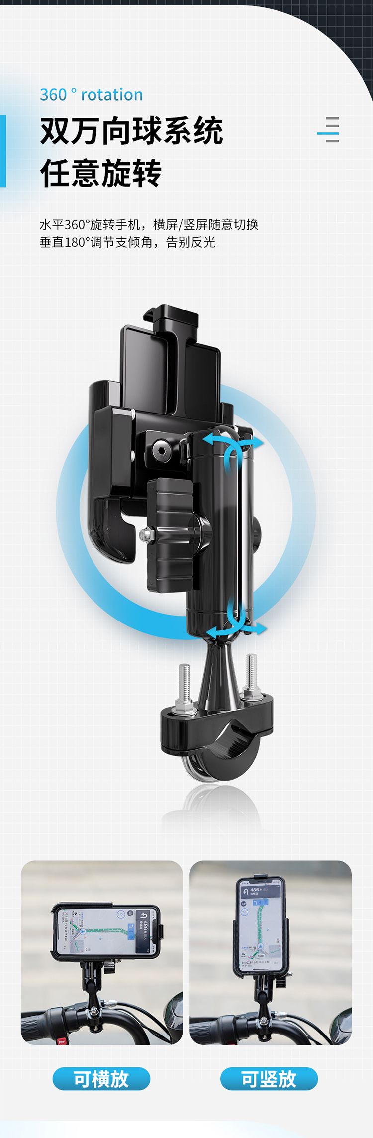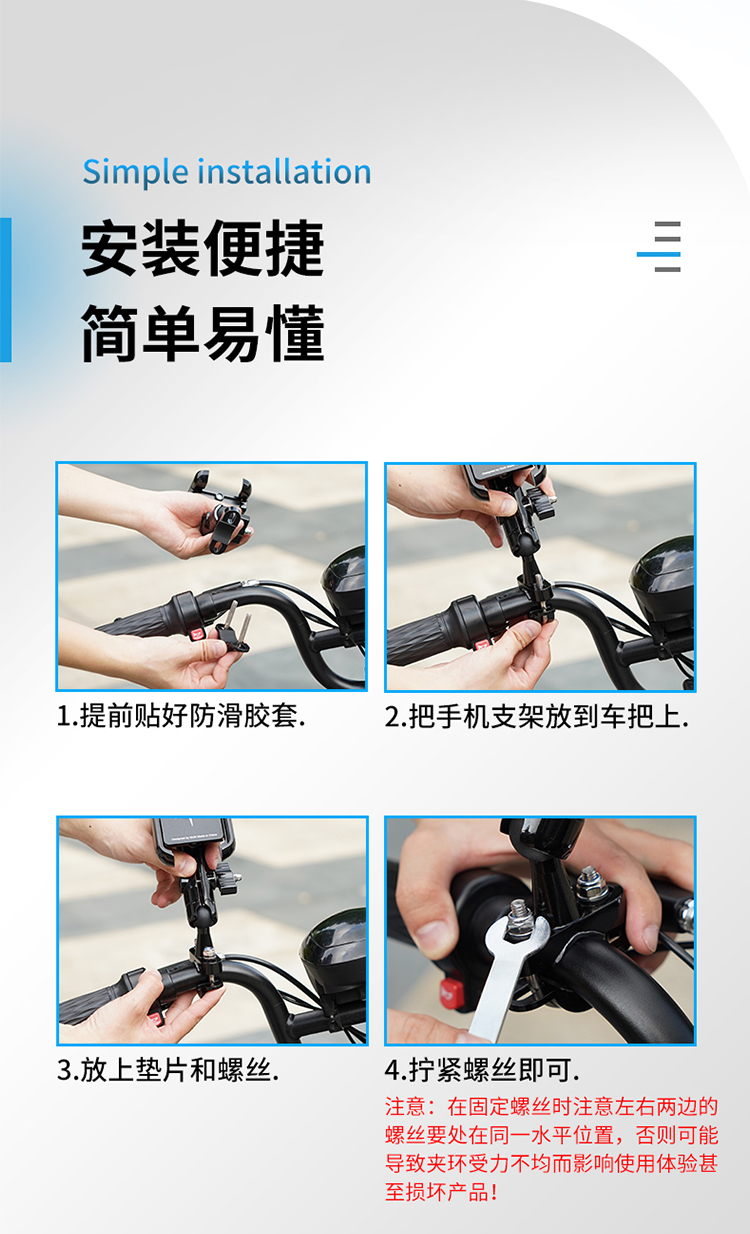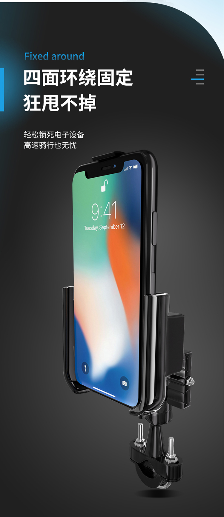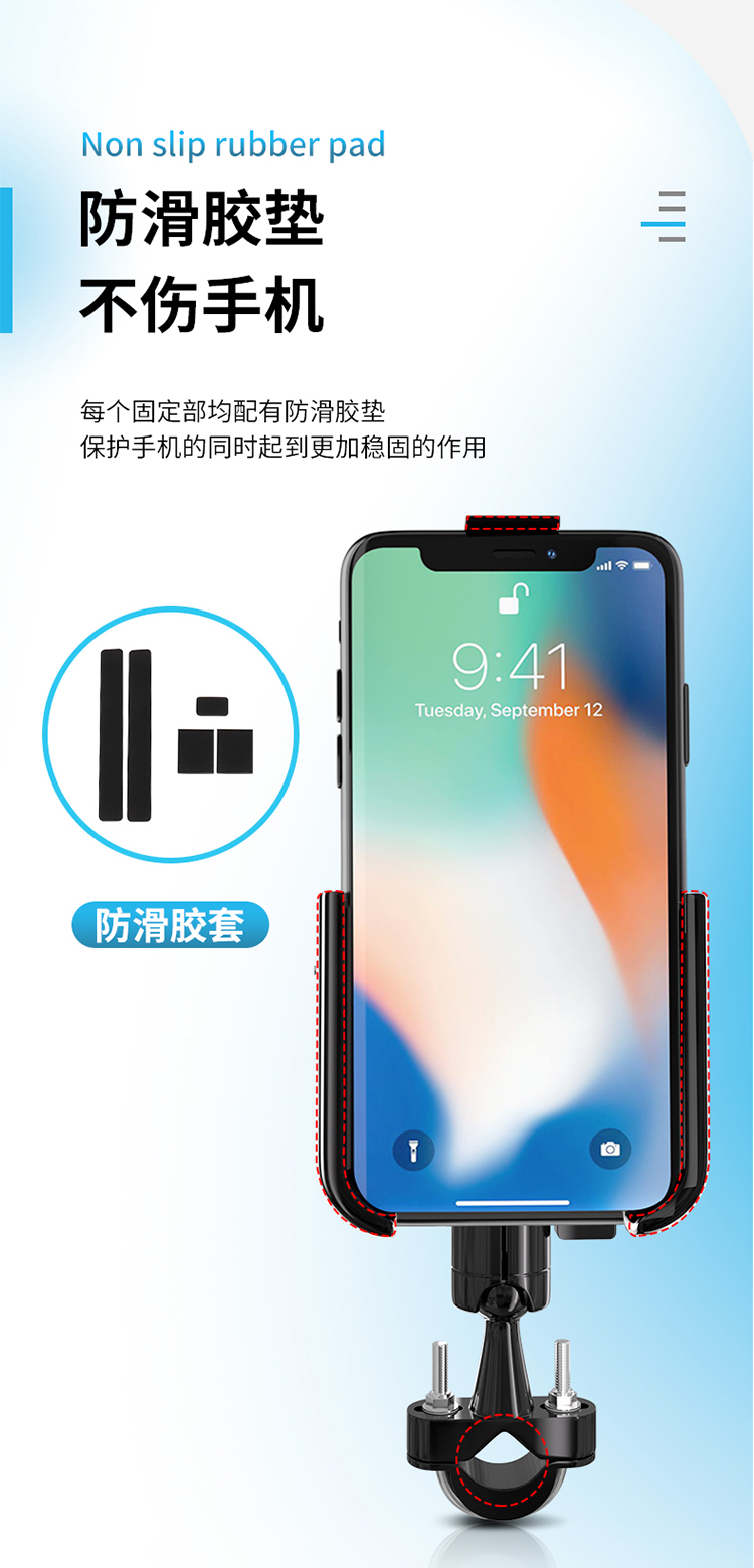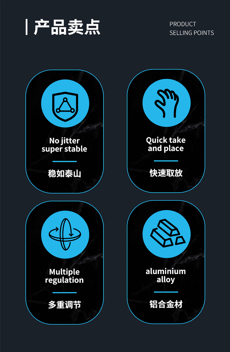 特點(diǎn):鋁合金架體,U型夾更加堅(jiān)固穩(wěn)定,適用性更廣,高兼容性不挑手機(jī)型號(hào),摩托車(chē)、電動(dòng)車(chē)等都可使用,四面環(huán)繞固定,夾手機(jī)更牢固,快速取放省時(shí)省力,雙萬(wàn)向球旋轉(zhuǎn)系統(tǒng),滿(mǎn)足多場(chǎng)景使用需求。