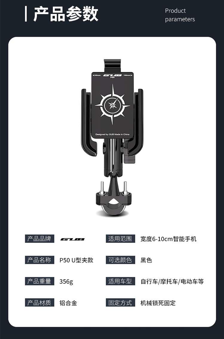 名稱(chēng):GUB P50 鋁合金手機(jī)支架(U型夾款)