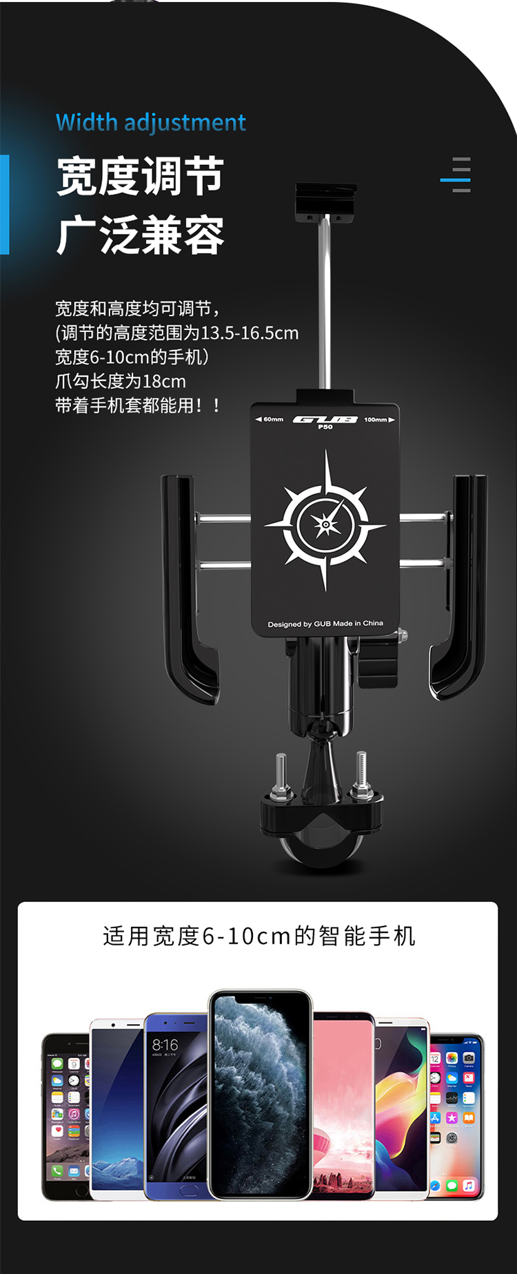 GUB P50 鋁合金手機(jī)支架(U型夾款)