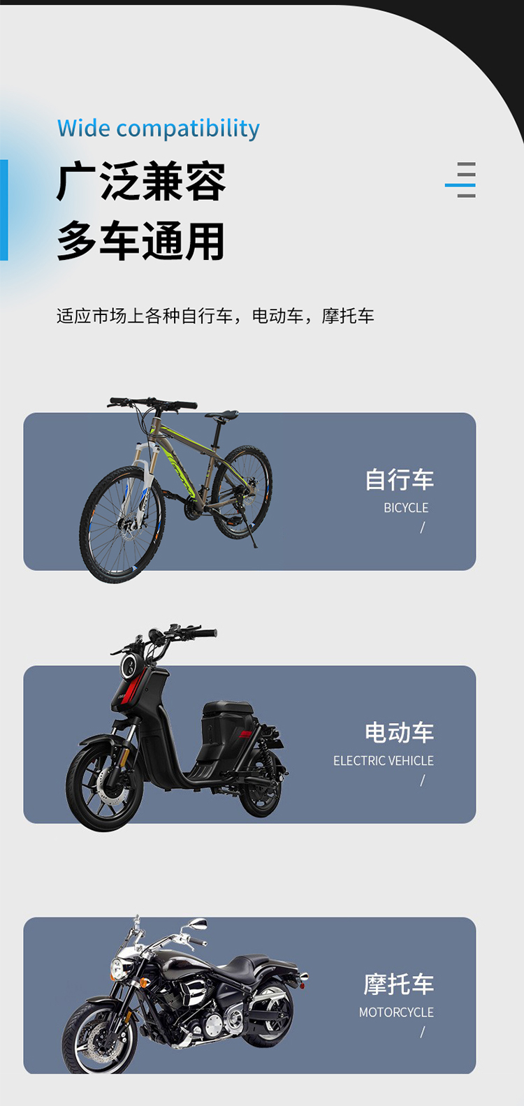 適用:摩托車(chē)/電動(dòng)車(chē)/自行車(chē)等