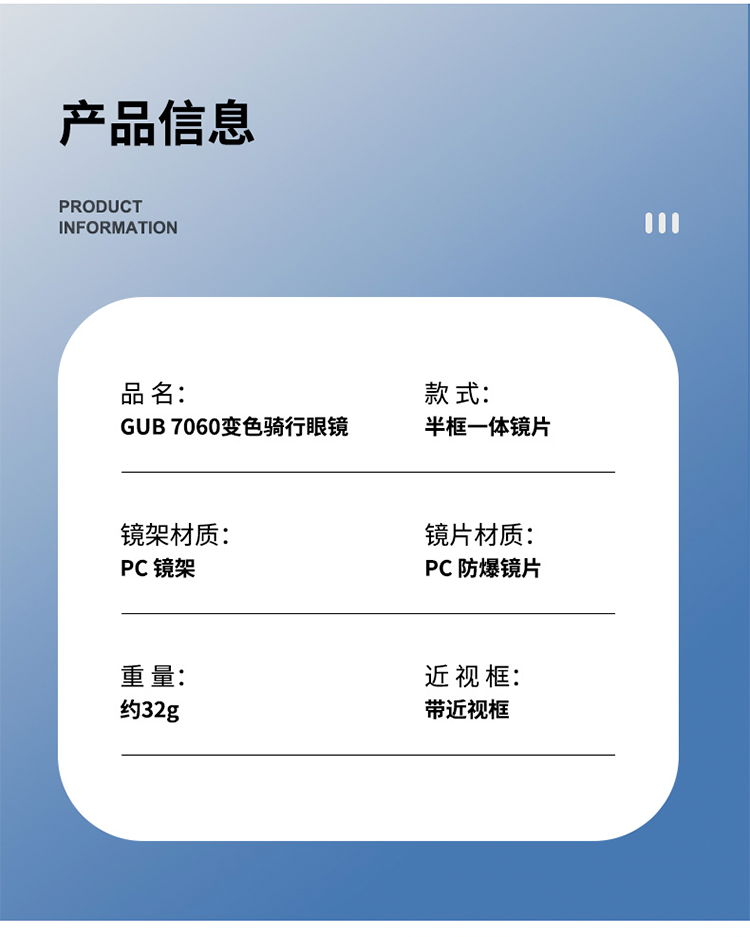 名稱:GUB 7060 騎行眼鏡