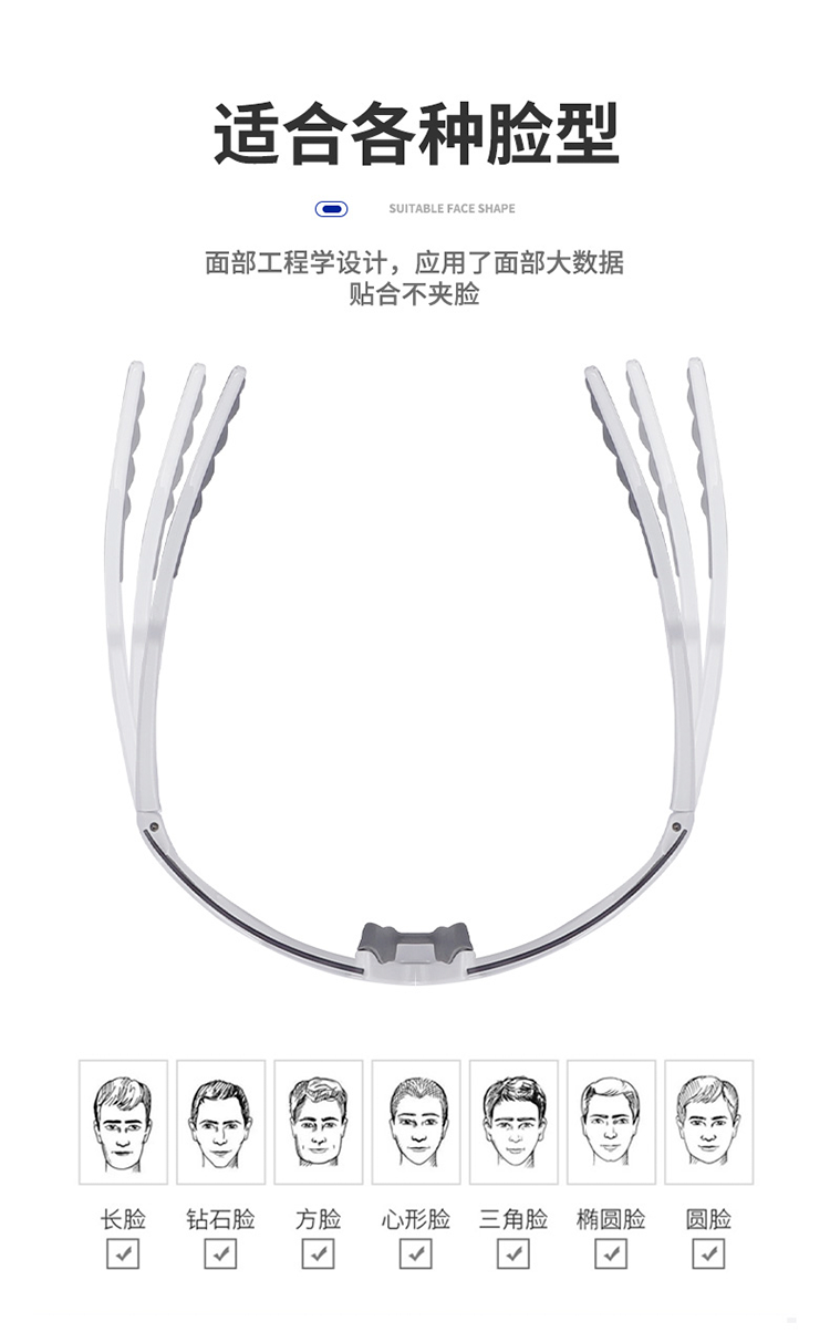 材質(zhì):PC鏡框和鏡腳、PC鏡片、橡膠鼻托