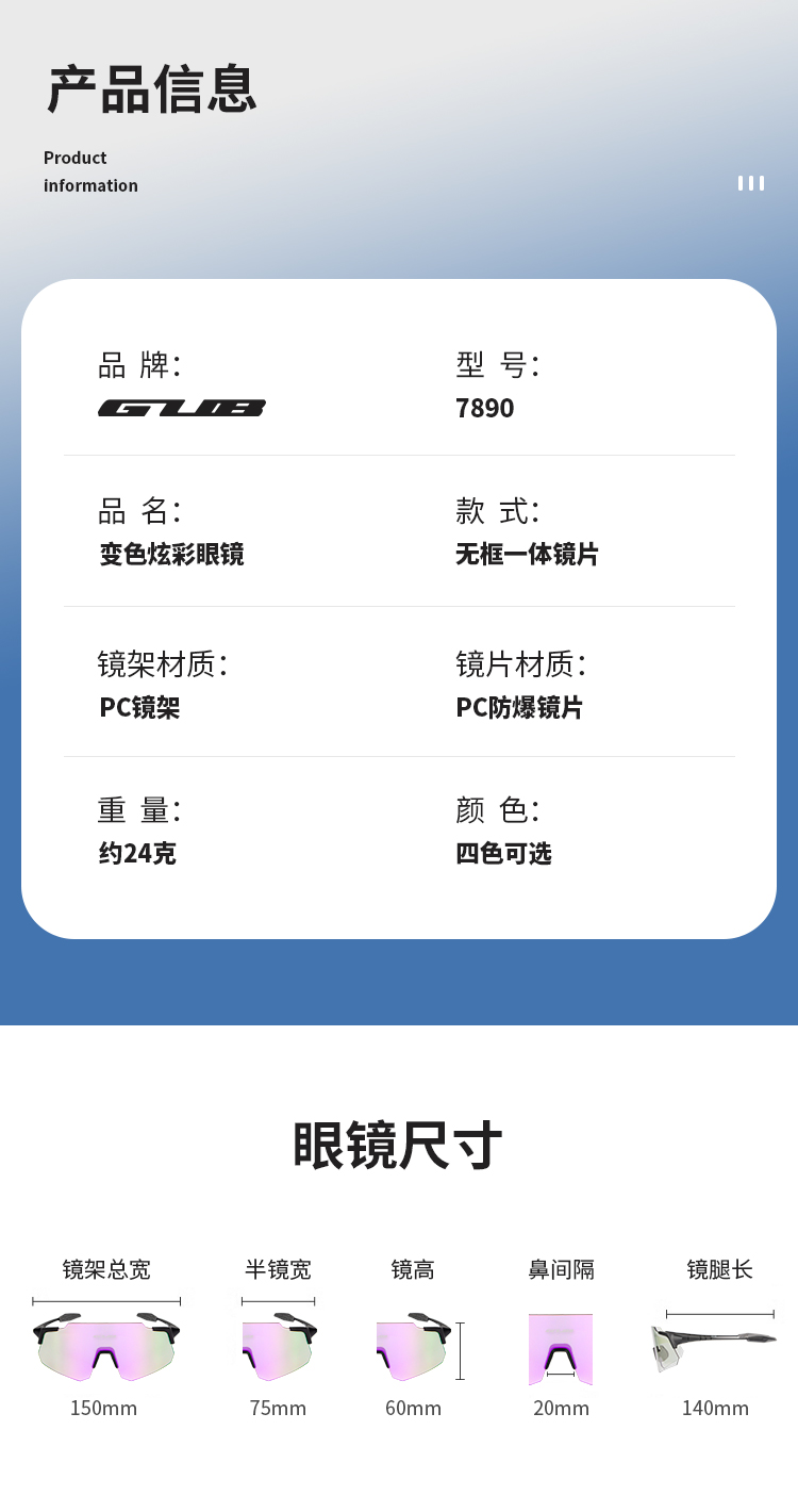 顏色:啞黑框腳/全面藍變色片、啞黑框腳/全面紫變色片、亮白框腳/全面藍變色片、亮白框腳/全面紫變色片
