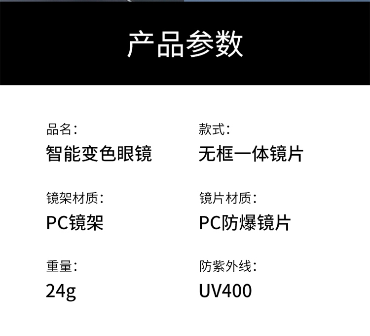 顏色:啞黑框腳/透明變色片、亮白框腳/透明變色片