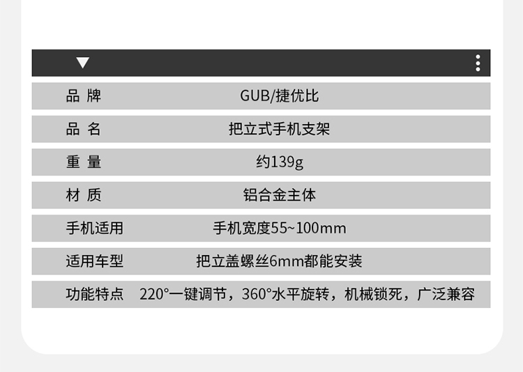 重量:約139克(單手機(jī)架)/約173克(毛重)
