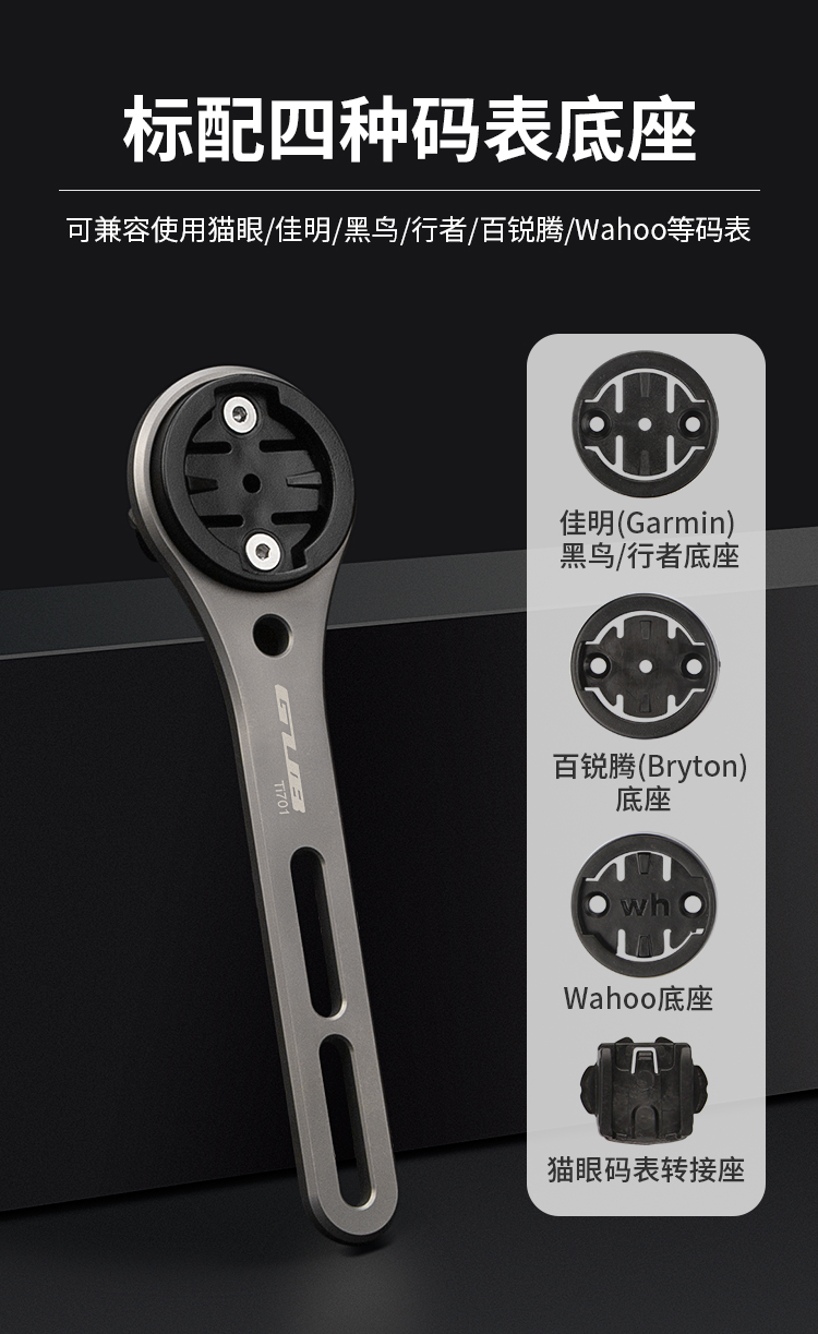 特點:鈦合金架體,居中安裝節(jié)省空間(一體把專用),兼容多種碼表,標(biāo)配運動相機接座,可擴展使用運動相機等配件