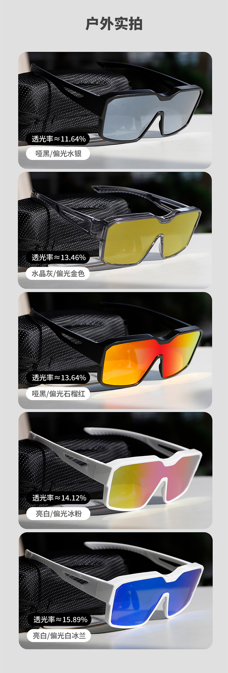 顏色:啞黑/偏光石榴紅、亮白/偏光白冰藍、啞黑/偏光水銀、亮白/偏光冰粉、水晶灰/偏光金色
