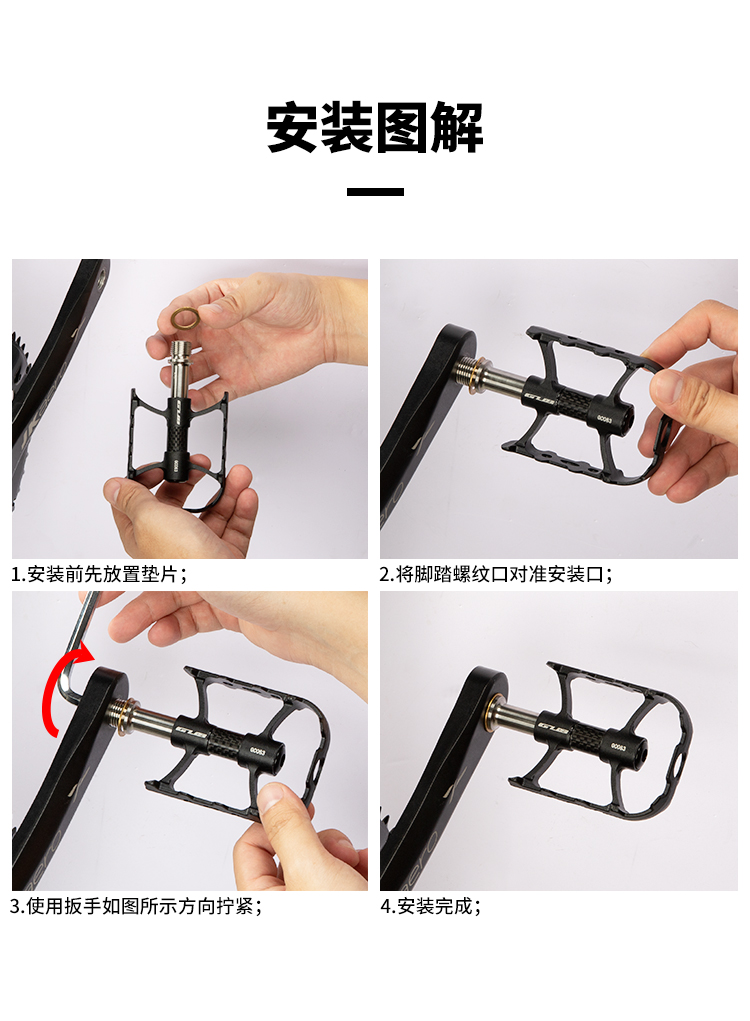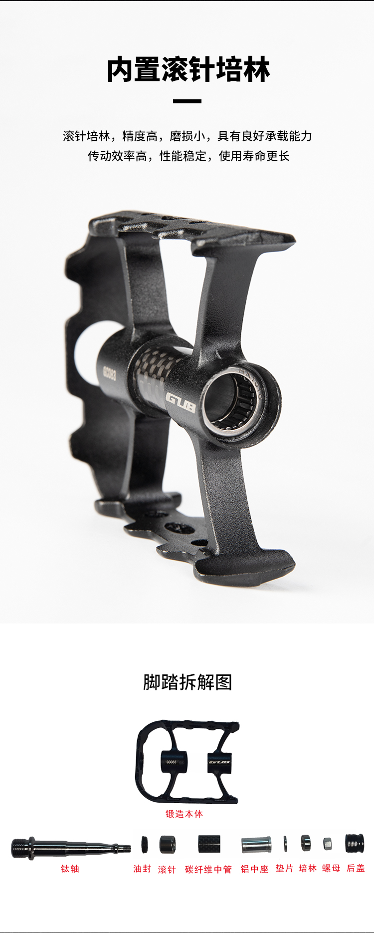 材質(zhì):鋁合金腳踏主體+碳纖維中管+鈦合金軸心