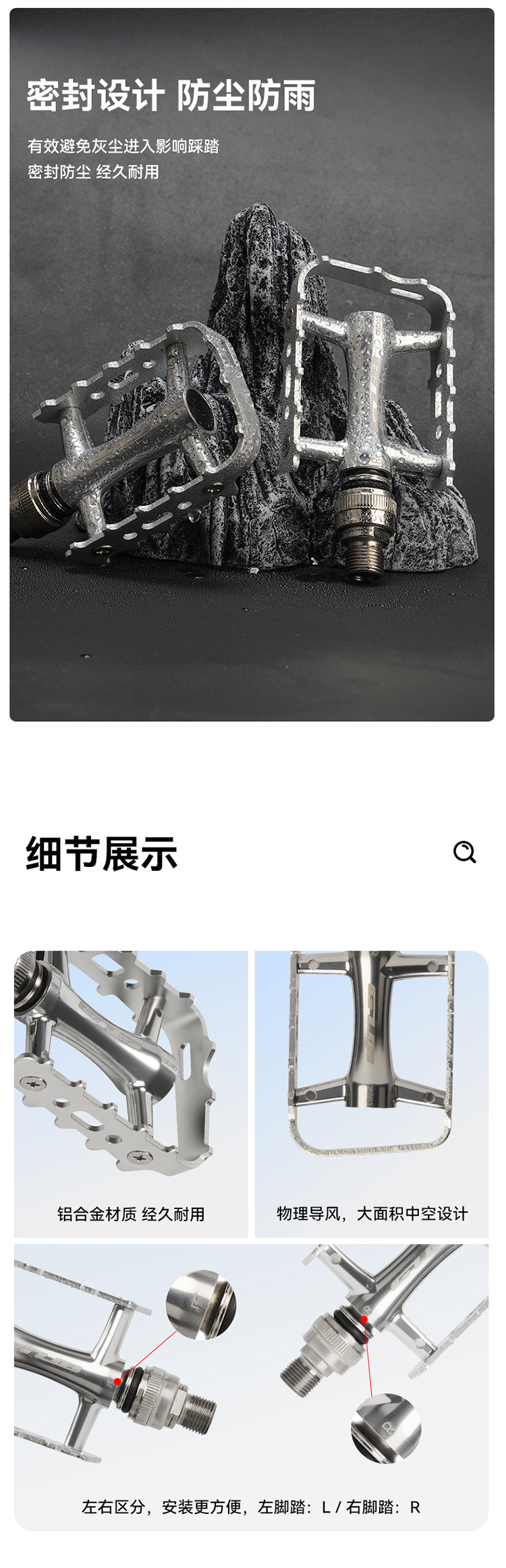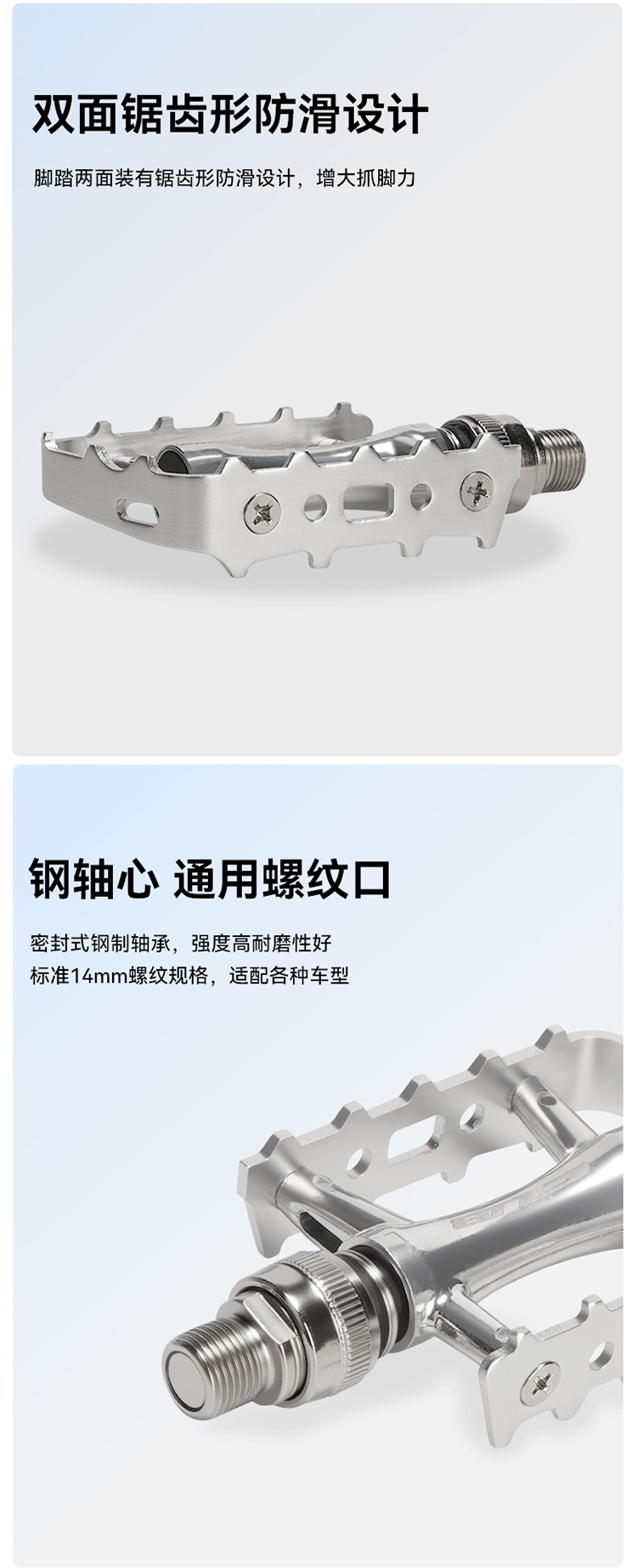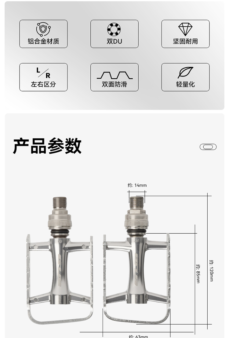 材質(zhì):鋁合金腳踏主體+鋼軸芯+雙DU
