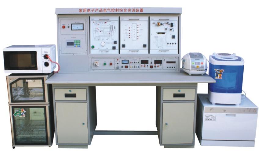 多功能家用電子產(chǎn)品電氣控制綜合實(shí)訓(xùn)裝置是根據(jù)《中華人民共和國(guó)教育行業(yè)標(biāo)準(zhǔn)-電子技術(shù)應(yīng)用專業(yè)儀器設(shè)備配備標(biāo)準(zhǔn)》,依照中華人民共和國(guó)勞動(dòng)和社會(huì)保障部發(fā)布的《家用電子產(chǎn)品維修工職業(yè)技能實(shí)訓(xùn)和鑒定設(shè)備技術(shù)規(guī)范》按照職業(yè)教育的教學(xué)和實(shí)訓(xùn)要求而研制的適合高職院校、職業(yè)學(xué)校的應(yīng)用電子技術(shù)、家用電器維修、電子電器應(yīng)用與維修專業(yè)等專業(yè)的家用電子產(chǎn)品原理與維修的實(shí)訓(xùn)教學(xué)。裝置由電風(fēng)扇、電飯煲、微波爐、消毒柜、洗碗機(jī)、泳衣機(jī)及實(shí)訓(xùn)臺(tái)、考核系統(tǒng)等組成。