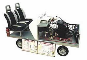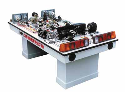 汽車仿真電路學生實習臺是按照汽車標準電器線路安裝而成。外型美觀,操作方便,透明直觀。全車電線束、儀表盤、各種開關、前后燈光分電器、點火線圈、調節(jié)器、繼電器、中央線路板,中央控制器、節(jié)氣門組件,均用實物裝成,各缸點火清楚可見,各缸噴油燈光顯示、轉速可快慢調節(jié),自動充電,電噴、ABS各傳感器和招待器均可用萬用表測試電壓或電流信號,(其中電噴實驗臺可用試管測量噴油量大小)。教師在實驗臺上任何部件制造故障由學生自行排除,拆掉各路保險絲、繼電器、臺面上電器接頭,由學生按照電路圖自行安裝可達到實習目的.